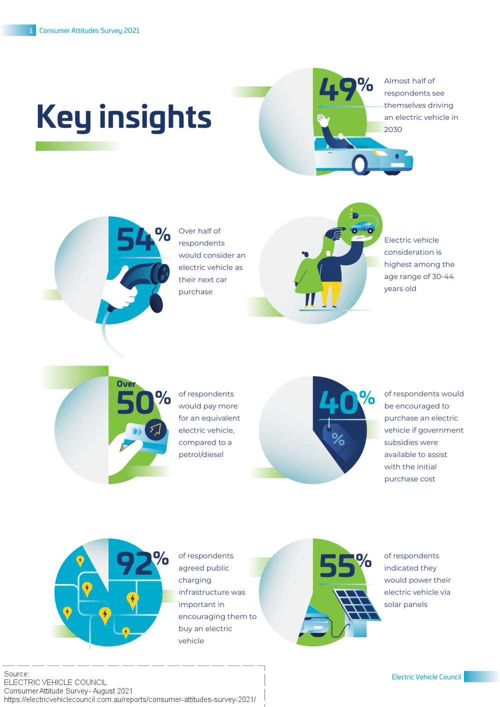 The survey conducted by the Electric Vehicle Council in conjunction with Carsales.com.au in July 2021 also indicated that most respondents would like to see government policies that encourage a transition to EVs.