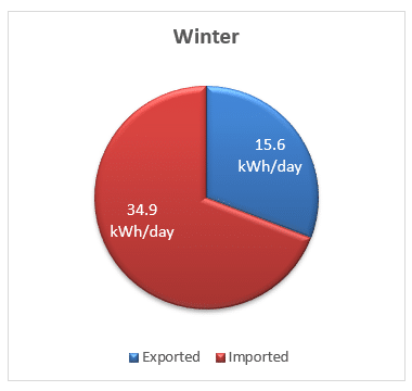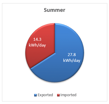 As can be seen in the two pie charts above, the variation in the ratio of exported & imported energy between summer and winter months can be quite substantial.