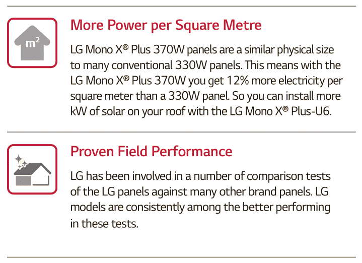 LG MonoX Plus 370W panels are available with all our Microinverter, Power Optimiser, and String Inverter systems.
