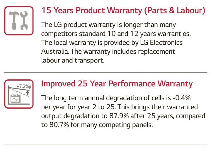 The high quality is the result of LG’s strong commitment to developing a module that delivers reliable, high output for years for a peace of mind solar solution.