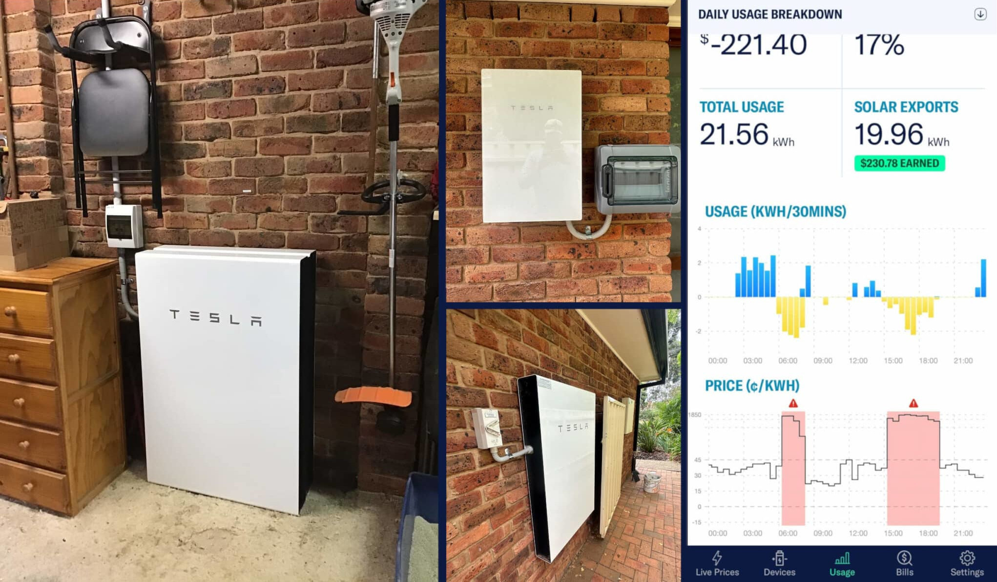 With this 3rd Tesla Powerwall 2 battery installed it is no longer just about having backup storage for the house but instead to further increase their profit potential by playing into the wholesale energy market as an individual. A screenshot below shows an example from the Amber app where a customer has made $221.40 in a single day by using Amber when there has been a huge price spike in the wholesale market.