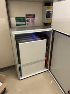 This system is set up to keep critical parts of the process up and running in the plant such as the PLC room (programmable logic controllers) and the server room for uninterrupted communications. The battery backup system allows for these processes to stay up and running for 2-3 hours while there is a power outage, giving ROBE time to switch over to generators if required.