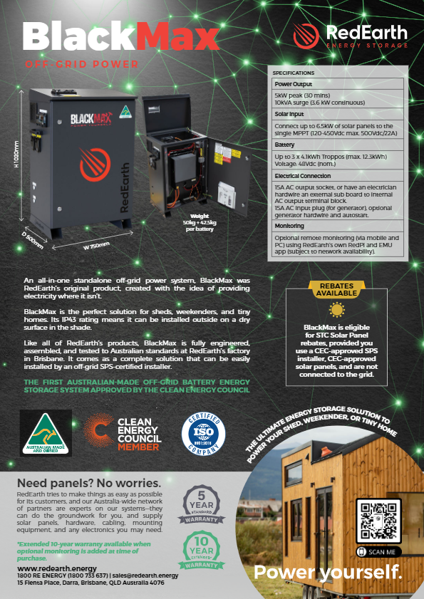 BlackMax offers up to 12.3kWh of storage and 5kW power output and backup generator capability.