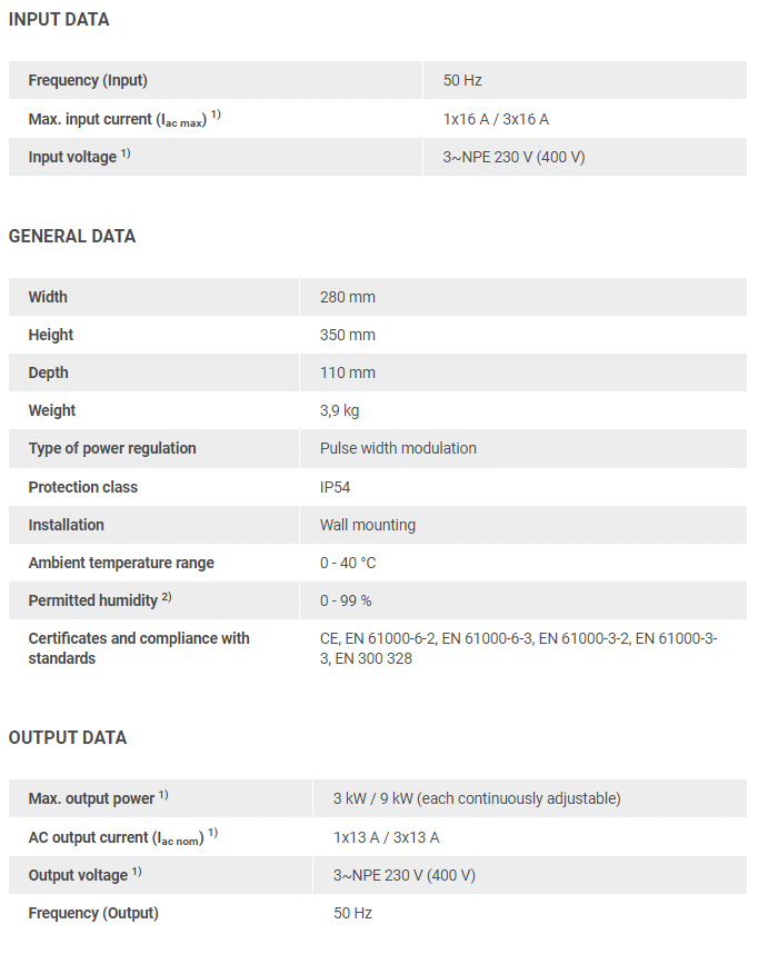 adjustable regulation from 0 to 9 kW, surplus PV current can be put to highly efficient use and fed to the consumers in the