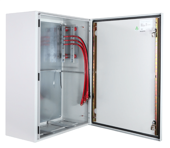Wall mounted, slimline enclosure for indoor and outdoor environments.