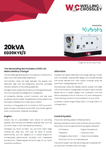 Welling & Crossley Kubota powered generating sets are fully integrated power generation systems that are stringently tested to provide optimum performance, reliability, and versatility for standby applications with excellent build quality for use in challenging environments.