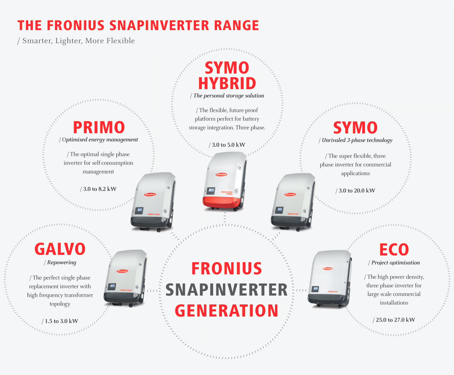 Power categories ranging from 1.5 to 27.0 kW guarantee suitability for virtually any system size – from a family home to a large-scale system.