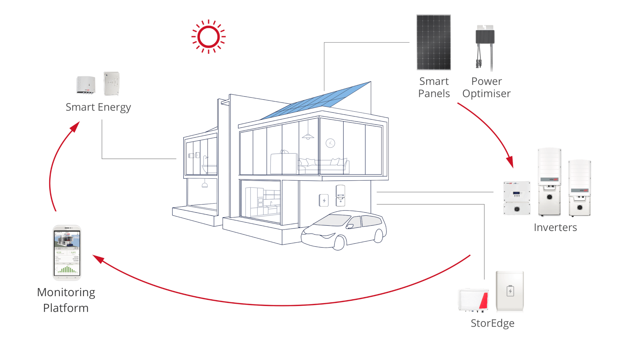 SolarEdge DC optimised systems offer increased energy production, easier maintenance, advanced panel level monitoring and enhanced safety features. StorEdge systems provide energy storage and backup power solutions.